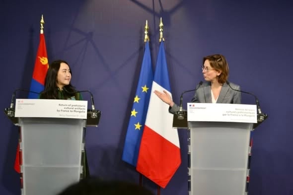 Монгол Улсаас хууль бусаар хил давуулан худалдаж, Францын нутагт 2015 онд хураагдсан махан идэшт үлэг гүрвэлийн нэг төрөл болох Тарбозавр батаарын бүтэн олдворыг Монголын талд хүлээлгэн өгөх ёслол Парис хотод боллоо. Бүгд Найрамдах Франц Улс (БНФУ)-ын Төрийн сан, үйл ажиллагааны сайд Амели дэ Мончалин 2025 оны арванхоёрдугаар сарын 8-нд Монгол Улсын Засгийн газрын гишүүн, Соёл, спорт, аялал жуулчлал, залуучуудын сайд Ч.Ундрам, Франц Улсад суугаа Онц бөгөөд Бүрэн эрхт Элчин сайд, ЮНЕСКО-гийн дэргэд суугаа Байнгын төлөөлөгч Уламбаярын Нямхүү нарт манай улсаас гаралтай палеонтологийн 217 олдвор болон Тарбозавр батаарын чулуужсан араг ясыг албан ёсоор хүлээлгэн өгсөн юм.