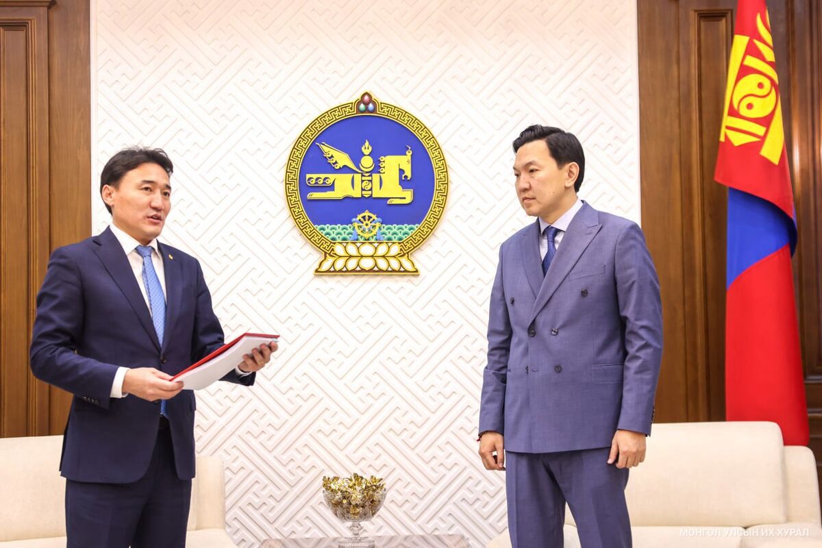 Монгол Улсын Их Хурлын дарга Н.Учралд өнөөдөр (2025.11.25) Улсын Их Хурлын гишүүн, Аж үйлдвэр, эрдэс баялгийн сайд Г.Дамдинням нар Стратегийн ач холбогдол бүхий бүтээгдэхүүний хангамж, нийлүүлэлтийг дэмжих тухай хуулийн төслийг өргөн мэдүүлэв.