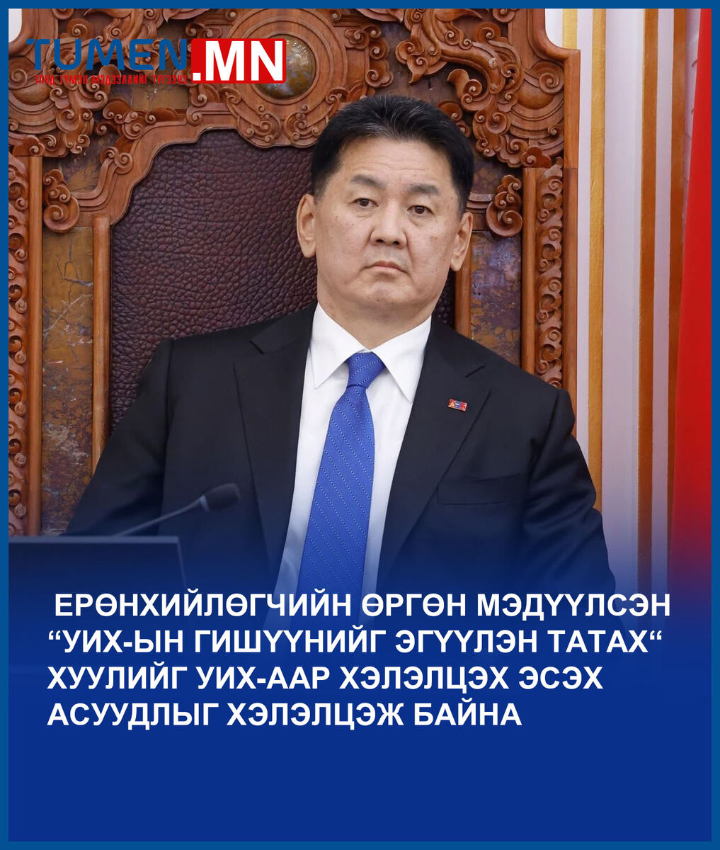 Ерөнхийлөгч У.Хүрэлсүх "УИХ-ын гишүүнийг эгүүлэн татах" хуулийн төслийг боловсруулж УИХ-д өргөн мэдүүлсэн билээ. Тэгвэл яг одоо УИХ-ын Төрийн байгуулалтын байнгын хороогоор дээрх хуулийн төслийг УИХ-аар хэлэлцэх эсэх асуудлыг хэлэлцэж байна.