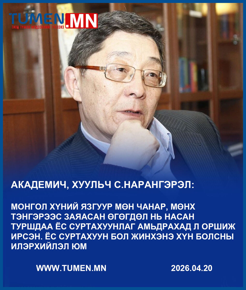 -Монгол хүний язгуур мөн чанар, мөнх Тэнгэрээс заяасан өгөгдөл нь насан туршдаа ёс суртахуунлаг амьдрахад л оршиж ирсэн. Ёс суртахуун бол жинхэнэ хүн болсны илэрхийлэл юм шүү. Энэ нь эелдэг найрсаг ба шударга ёс, эр зориг, үүрэг ба хариуцлага, эс шуналдах, жудаг, нинжин сэтгэл, итгэлцэл, үнэн, нэр төр, хамтач, эв эе, тэсвэр тэвчээр, атгаг бус ба урвашгүй сэтгэл зэргээр илэрлээ олдог юм. Эдгээрээс УИХ-ын гишүүнд түлхүү шаардагдах ёс суртахууны өгөгдлүүд нь эрхэмбээрийн ёс зүйг бүрдүүлж өгдөг. Юуны түрүүнд эх орон, ард түмнийхээ төлөө нэгэн үзүүрт сэтгэлээр чин зүрхнээсээ хүчин зүтгэх явдал юм. Энэ ч учраас Үндсэн хуулийн 23 дугаар зүйлийн нэг дэх хэсэгт УИХ-ын гишүүн нийт иргэн, улсын ашиг сонирхлыг эрхэмлэн баримтална гэж заасан шүү дээ.